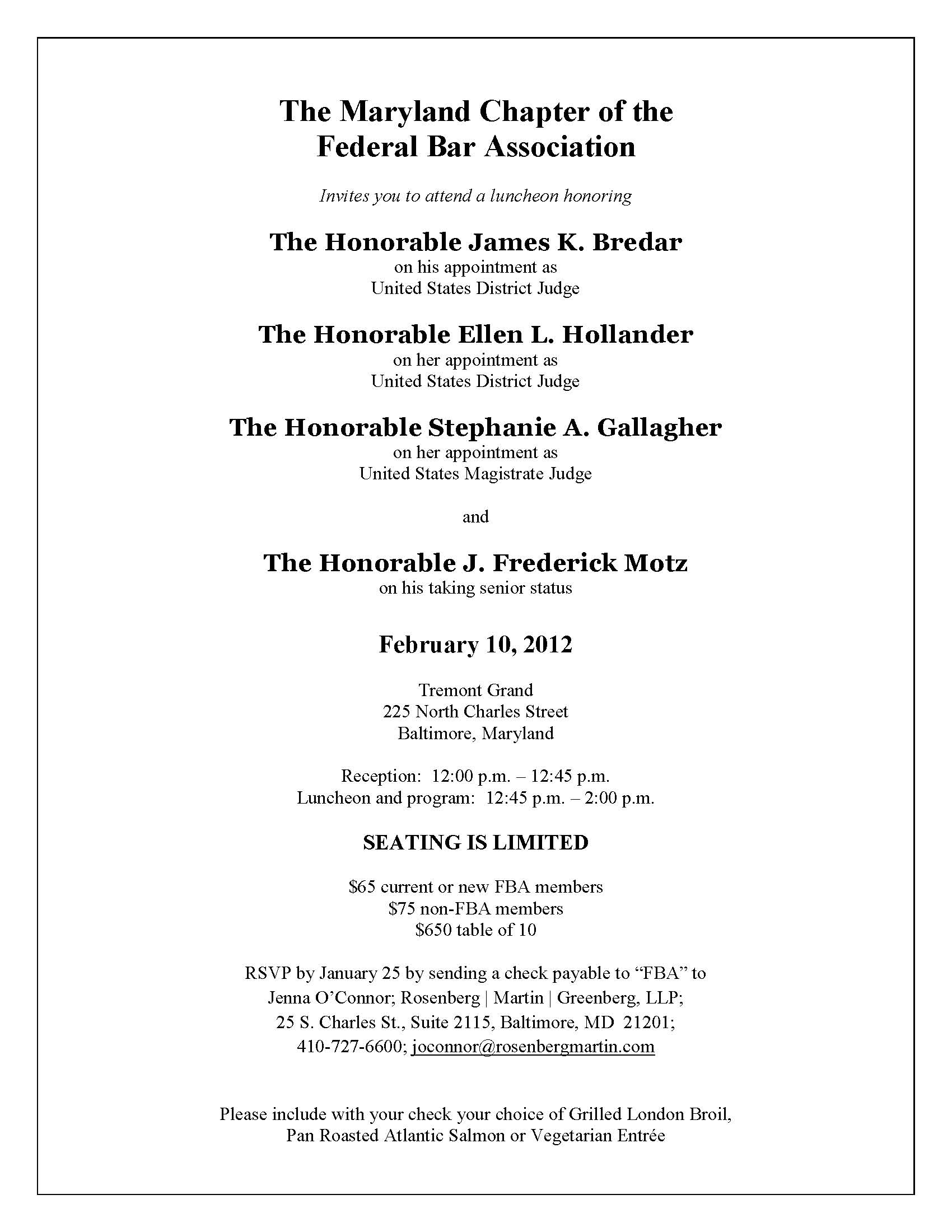 Hon. James K. Bredar, Chief Judge | Felicia C. Cannon, Clerk of Court